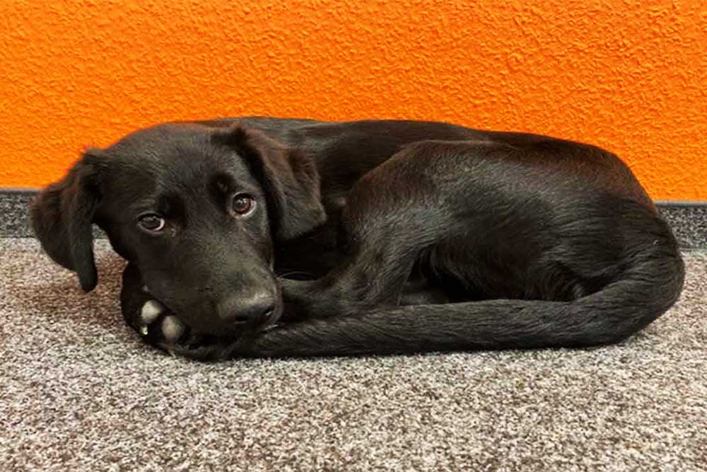 Er begrüßt morgens alle freudig, sucht Leckerlies und erfreut uns mit seinem Übermut. Dadurch, dass er noch klein ist, schläft er natürlich auch noch viel. Ansonsten erinnert er die Mitarbeiter regelmäßig daran, dass für eine Streichelpause immer Zeit ist und auch der ein oder andere Ball geworfen werden muss. Außerdem erinnert er alle Mitarbeiter daran, dass Ordnung das A und O ist, denn Papier, das rumfliegt, wird unter Umständen mitgekommen und zerkaut.